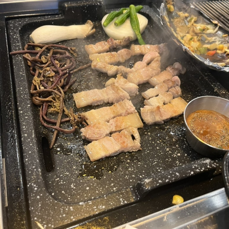 우리는 조돼리셋트(모듬조개구이 + 오겹살)