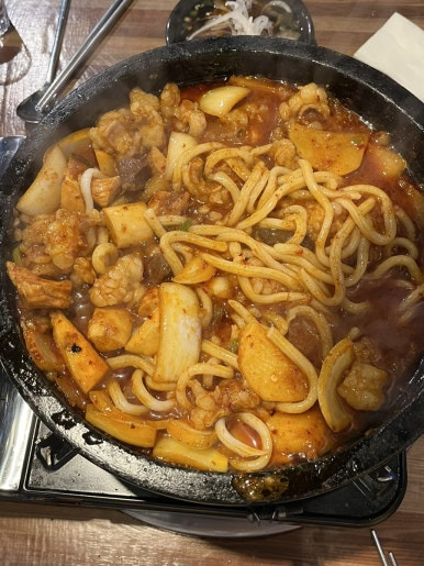 냅다 추가해서 열심히 섞어서 익혀서 먹기 시 - 작 했당 이런 양념에 우동사리는 너무나도 옳아요 양파랑 같이 먹으면 또 왤케 맛있는지