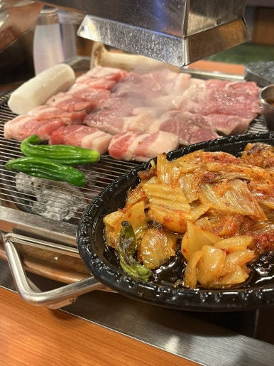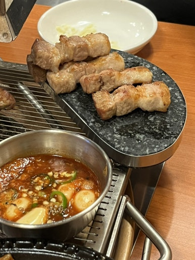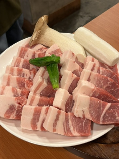 언니네랑 떠들면 고기 굽는거에 집중하기도 어렵고, 굽는 사람 (예를 들면 창우) 이 너무 고생해서 아쉬운데 구워주는 그릴링 서비스가 너무 좋아서,,, 또 만족,,,, 하나하나 신경써가면서 정성스럽게 구워주셔서 넘 좋아따 데이트 장소로도 굿일듯