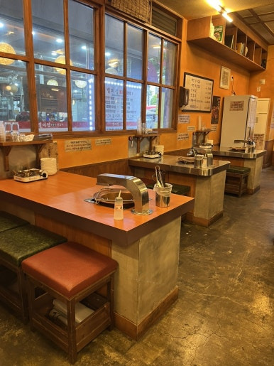 뭔가 옛스러운? 향토찜질방 느낌인데 세련됨 ㅋㅋㅋㅋㅋㅋ 테이블도 크고 좌석도 여유로워서 4인석 ~ 단체석 까지 다양하게 준비되어있다 (우리가 간날도 2팀이 모임이라 나가시고 부랴부랴 찍어뜸)