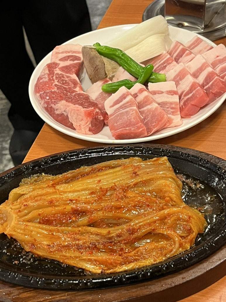 이겹살 과 삼겹살의 큰 차이는 모르겠지만 확실히 삼겹살이 육즙이 더 팡팡하고 기름진 맛이라 내 스타일이긴 했다 목살도 생각보다 더 부드럽고 육즙이 잘 느껴지고 기름져서 좋았음 !! 그리고 들기름에 구운 김치라 맛(이)없(을을수가)없(는)맛이였고 버섯, 꽈리고추도 고기랑 굉장히 잘 어울려서 맛있게 먹었다