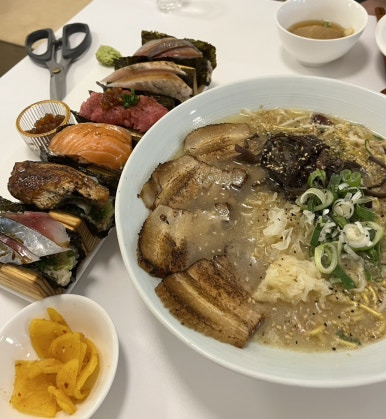 노리마끼를 제공해주신 가위로 반토막 내서 한명씩 먹으면 된다 회 큼직큼직하고 신선해서 먹기 딱 ‼️