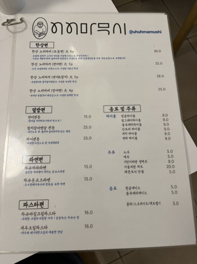 구수한 돼지 육수에 면이 들어가있눈데 진짜 구수함 ㅋㅋㅋㅋ 국물 맛이 진하고 딱 좋은게 소주가 생각나벌임 ㅠㅠ 숙주도 야채도 차슈도 듬뿍듬뿍이라 건더기 먹기 딱 좋다 아쉬운건 면이 좀 많이 짧다는거? 잘라져서 나오는 느낌이었다 아예 짧아서 ! 하지만 먹기는 간편함