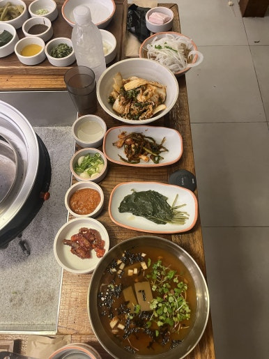 한우 넘 비싸서 다시 갈 엄두가 안나여.. 그리고 테이블 간격이 너무 넓어서 잘나온 밑반찬 먹는게 좀 힘들었던게 아쉬웠담
