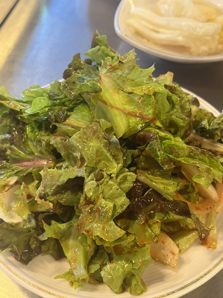 상추겉절이, 백김치, 감자샐러드, 무국물, 보리차까지 기본반찬 ! 기본반찬이 전체적으로 간이 삼삼함 ( 짠쟁이 박씨는 조오금 아쉬웠다고 한다) 하지만 백김치가 진짜 맛있었다!!