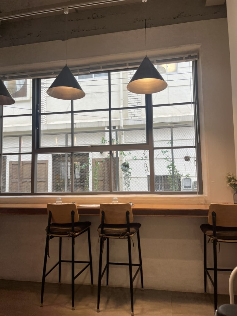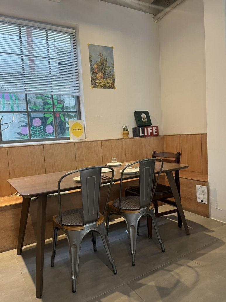 개인적으로 창가자리가 좋아따 밖에 푸릇푸릇한 풀들이 이쁘게 보이는 것도 좋고 이 날은 비 오는게 운치 있어보이더라 우리는 첫번째 자리 선〰️택
