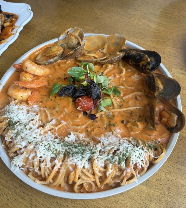 크림은 싫어하고 토마토 베이스 소스를 좋아하는 우리들의 의견으로 시킨 로제 파스타