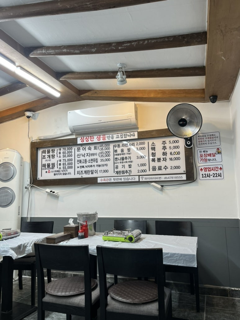 해물탕, 조개탕 소 중 대 60,000 - 80,000원