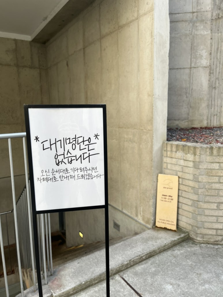 여기 너무 핫해서 평일에도 웨이팅 한다고 하길래 긴장하면서 갔으나 평일 열두시반 방문 기준 웨이팅도 없고 자리도 낭낭하게 있어따