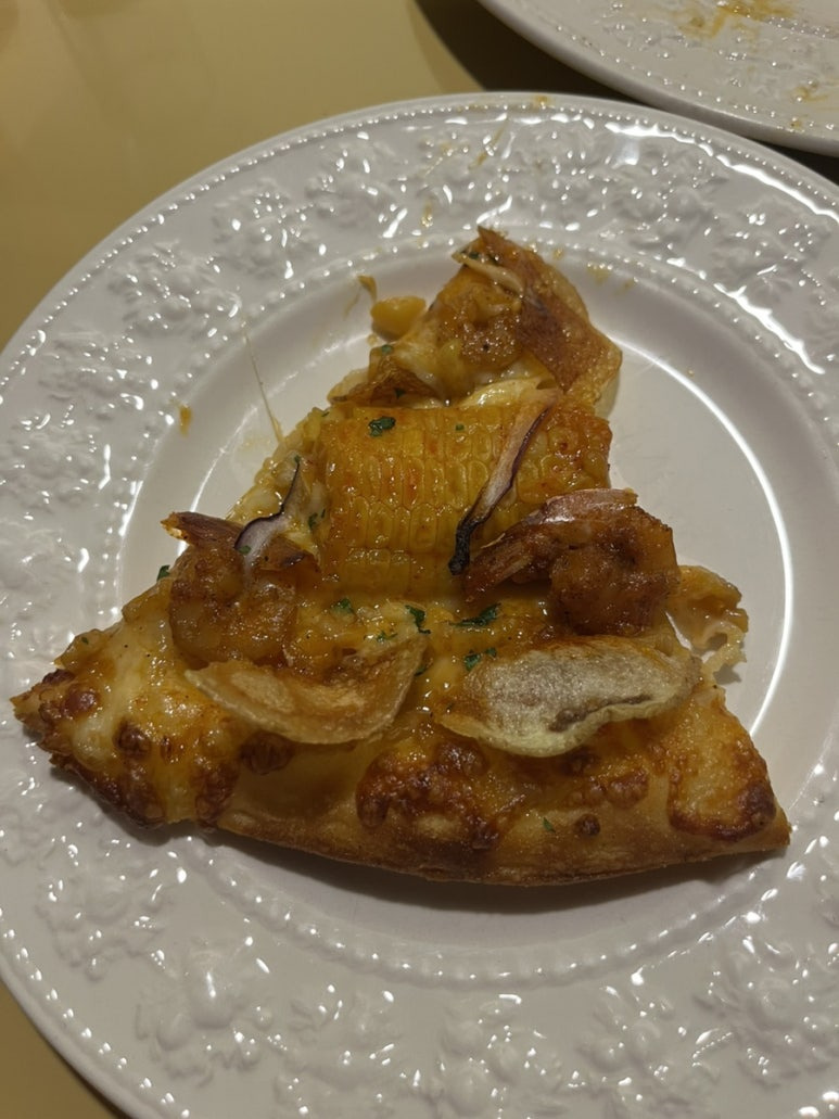 피자 위에 올려져있는 옥수수가 신박하게 맛있다 ㅋㅋㅋㅋ 느끼할거같은데 매콤한 맛도 나서 느끼하지도 않고 잘 들어감 그냥 맛있움 ㅠㅠ 저 밑에 감자칩도 바삭바삭하고 도우는 얇은데 치즈는 그득해서 부드럽게 들어간다! 옥수수피자 이색적임 왕추천