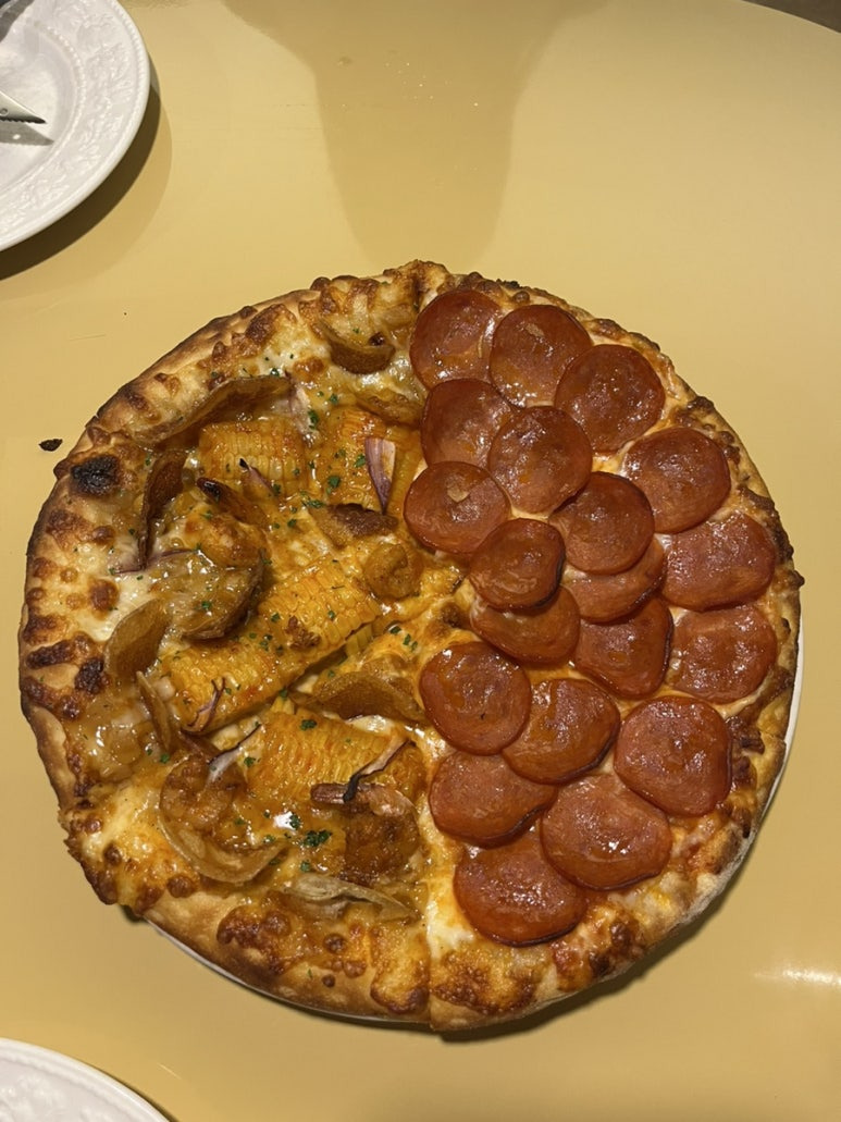 옥수수 반 페퍼로니 반 피자 (22,000)